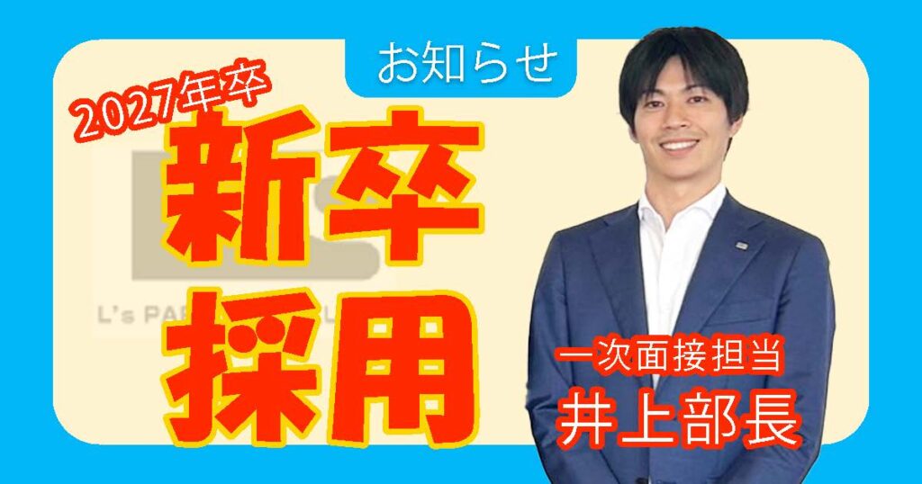 みなさまこんにちは!今年もやってまいりました✨今回は、新卒(2027年卒)採用募集のお知らせでございます!株式会社エルズパートナーでは2027年度新卒の方を対象…